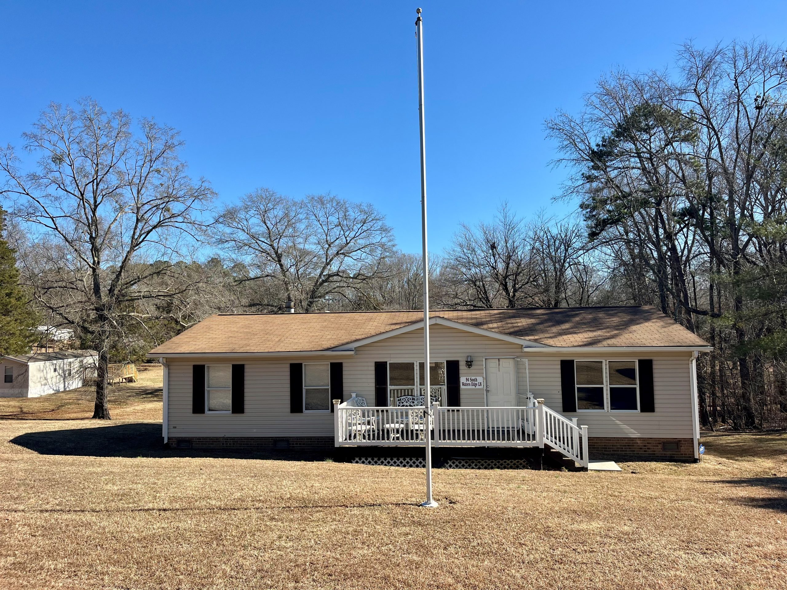 Enjoy living at Kerr Lake full time! Stove, refrigerator, dishwasher, and washer/dryer provided. Heats by a heat pump and uses well water. Yard maintenance and access to the community dock included. Huge detached garage behind the house for all of your lake toys available to rent at an additional cost.