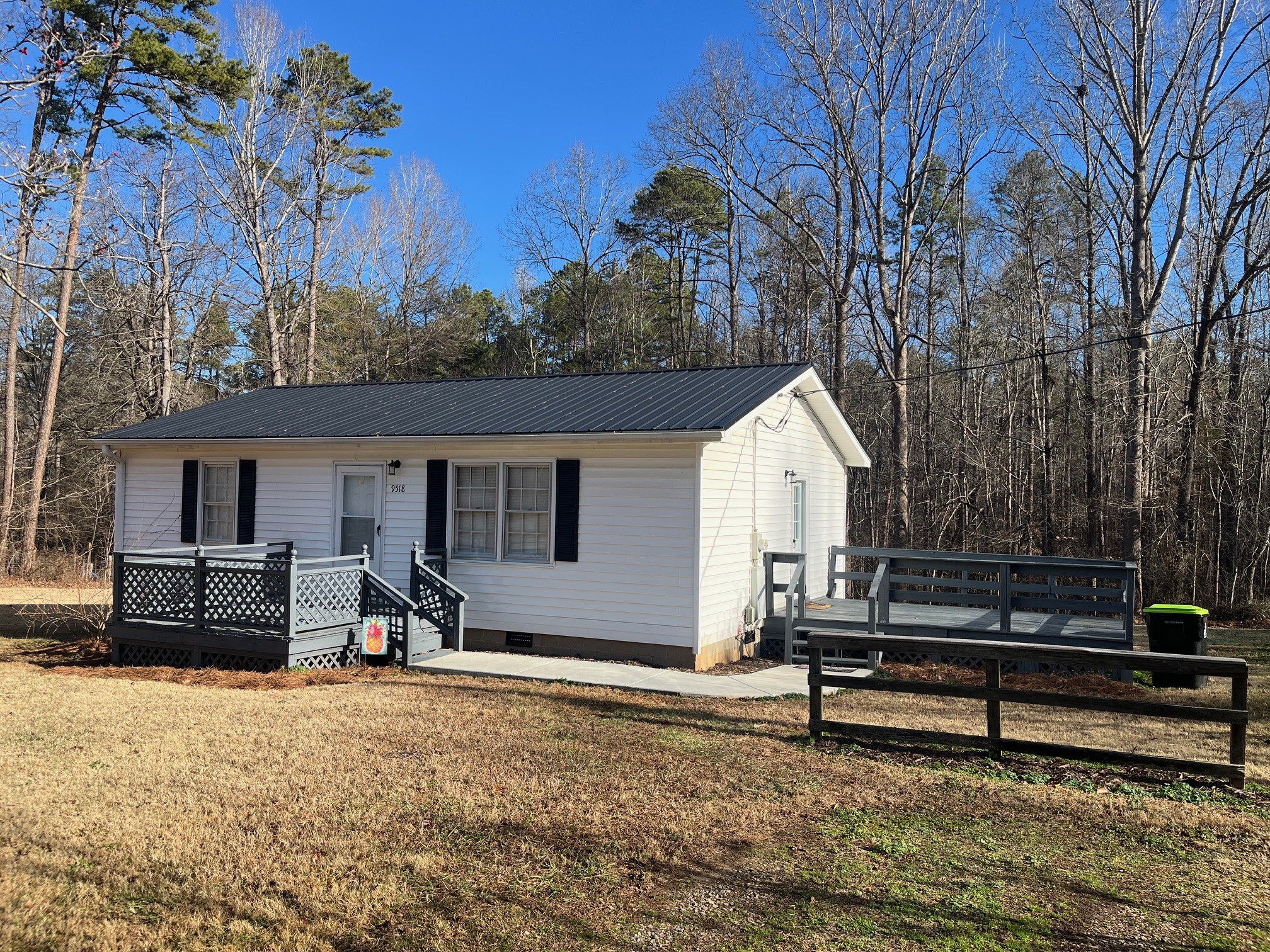 Recently renovated inside–freshly painted and new flooring. Stove, refrigerator, and connection for washer/dryer provided. Heats by a heat pump and is located in a neighborhood area.